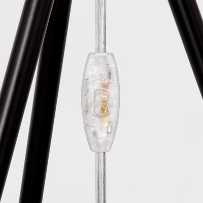 Let your artistic expression loose with this unique Rattan Diamond Tripod Floor Lamp from Threshold™. With three thin legs and a bold cage design, this black floor lamp stands just under five feet tall to easily fit in any room. The rocker switch design lets you have just the right amount of light for reading, working or relaxing before bed. Whether you purchase it with a bulb already included or would rather supply your own, you’ll love how the lamp lights up your living space.
