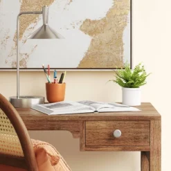 Large Wood Geo Assembled Table Lamp Brown – Threshold™: No Assembly, UL Listed, Cotton Shade